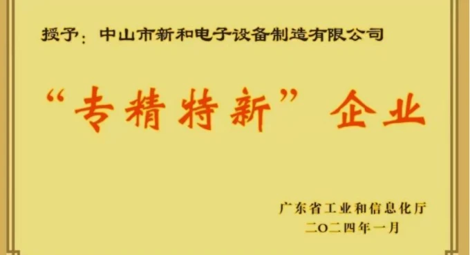 高新技术企业,专精特新企业、中山市工程技术中心、ISO9001、ISO14001、ISO45001、重合同守信用企业,中山市特色产业集群协同创新供应商入库企业等多项荣誉。