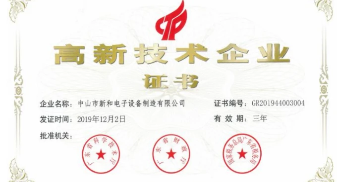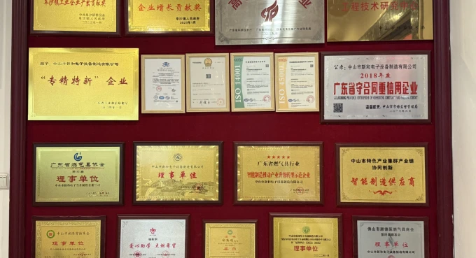 高新技术企业,专精特新企业、中山市工程技术中心、ISO9001、ISO14001、ISO45001、重合同守信用企业,中山市特色产业集群协同创新供应商入库企业等多项荣誉。